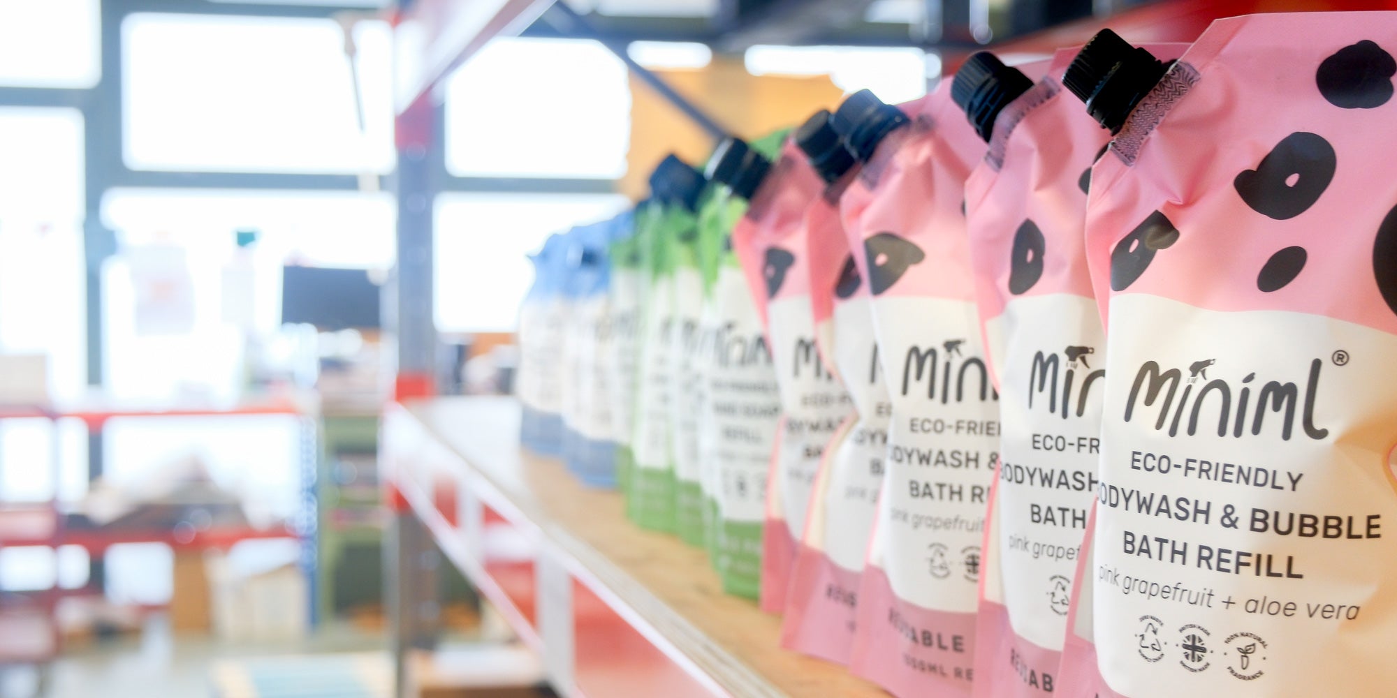 At Miniml HQ we have a large industrial washer to clean and re-use empty containers, they are then put back into production to use again and again!