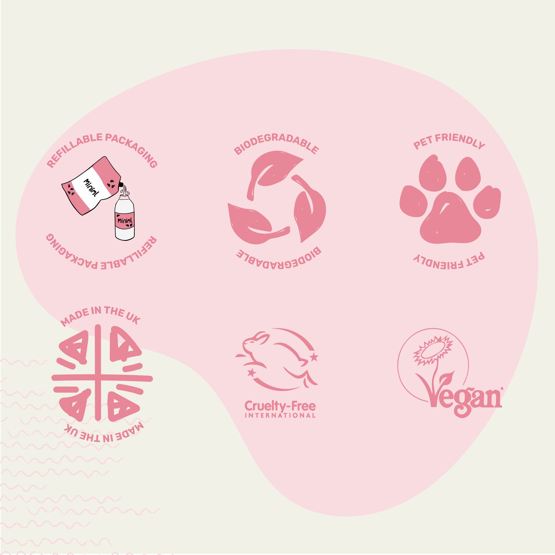 At Miniml, we don't believe in single use plastic or recycling. That's why we reuse and refill every bottle that we supply to create a completely zero waste supply chain. Our refill containers are designed to be returned to Miniml HQ to be cleaned and re-used again and again...and again!