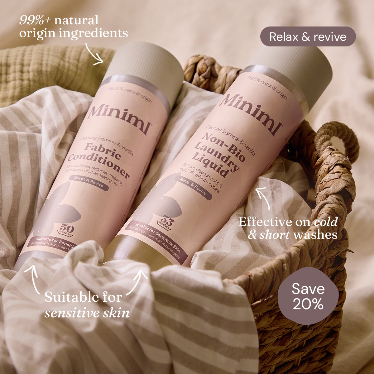 We’ve got your laundry sorted with the Laundry Essentials Bundle in our irresistible Wild Jasmine & Vanilla scent - it’s quickly become our best seller for a reason. This hardworking set includes our non-bio laundry detergent and fabric softener, saving you 20% compared to buying individually, plus an extra 10% off when you subscribe.
