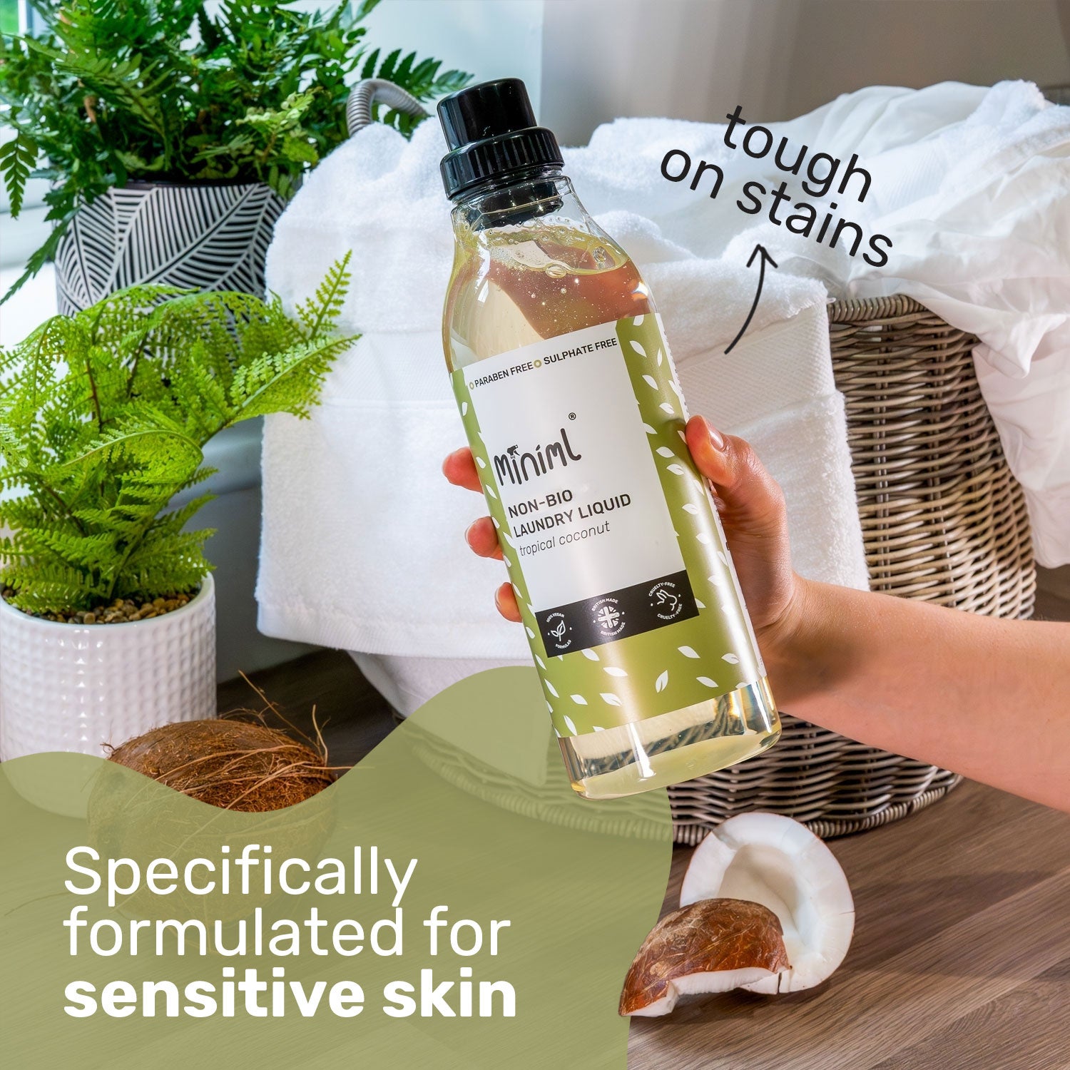 Our Non-Bio Laundry Liquid is worth taking your clothes off for! It is a brilliant all-rounder that stands up to dirt and stains even on low temperatures, whilst being a big softie on your skin.