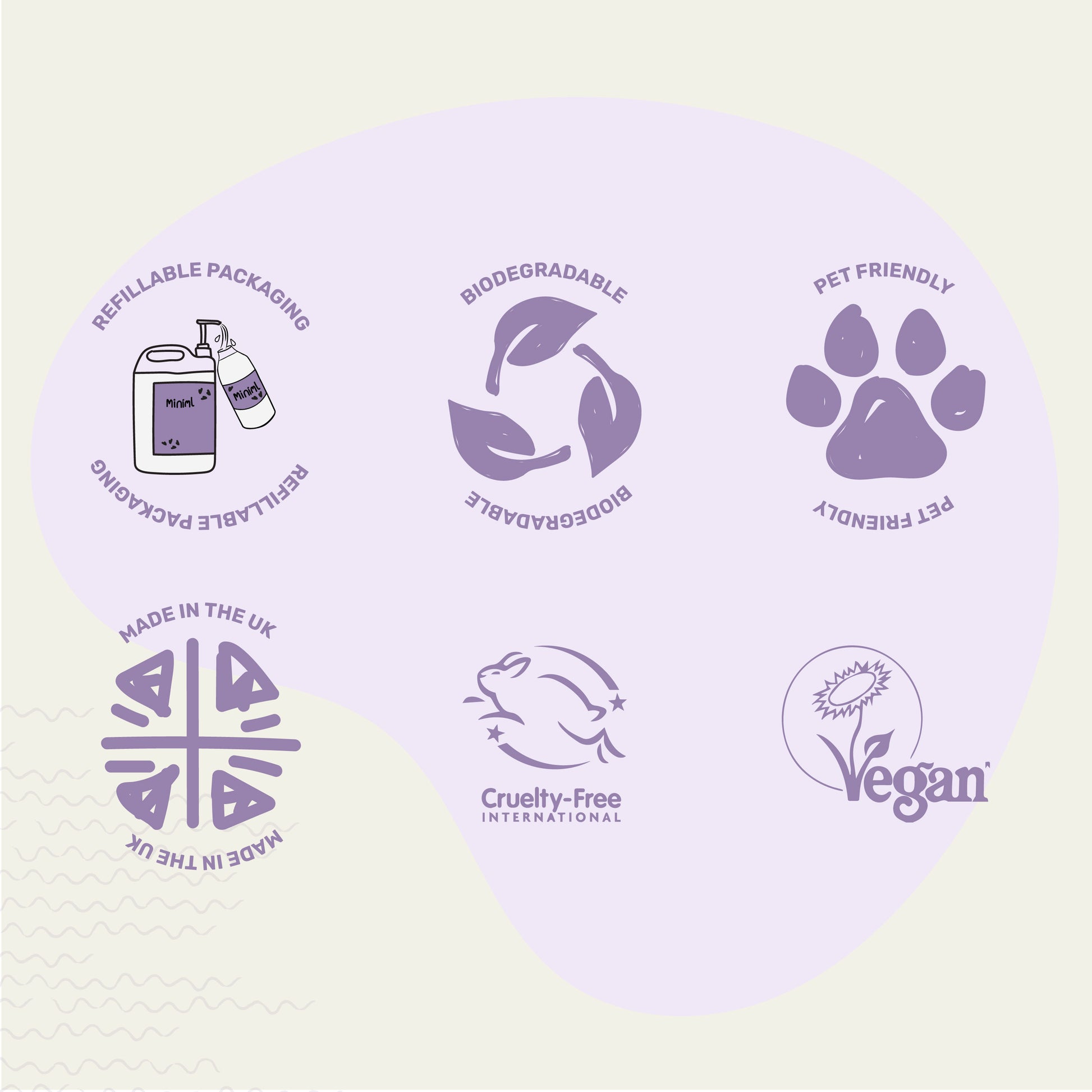 At Miniml, we don't believe in single use plastic or recycling. That's why we reuse and refill every bottle that we supply to create a completely zero waste supply chain. Our refill containers are designed to be returned to Miniml HQ to be cleaned and re-used again and again...and again!