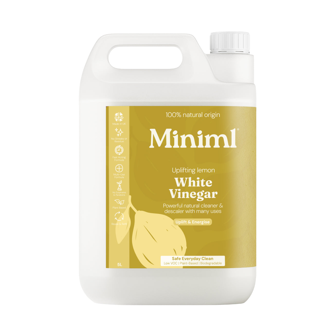 Harness the natural cleaning power of white vinegar infused with uplifting lemon. Ideal for removing limescale, odours, and stains.